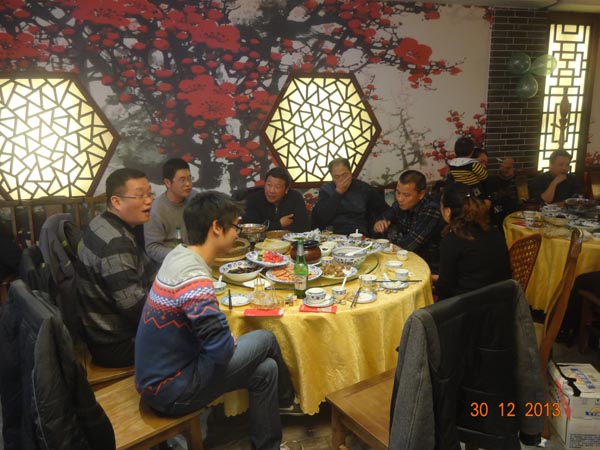 2013-12-30中午,公司全體人員進(jìn)行年終尾牙聚餐。首先周總代表全體股東發(fā)表發(fā)言,吃飯期間穿插摸獎(jiǎng),領(lǐng)導(dǎo)敬酒將氣氛推向高潮。總之這次活動(dòng)取得圓滿成功,大家都吃得很開(kāi)心,玩得也很盡興。通過(guò)本次公司聚餐,同事之間有了一個(gè)更好的交流機(jī)會(huì),不僅加深了同事之間的感情,還增強(qiáng)了整公司的凝聚力。